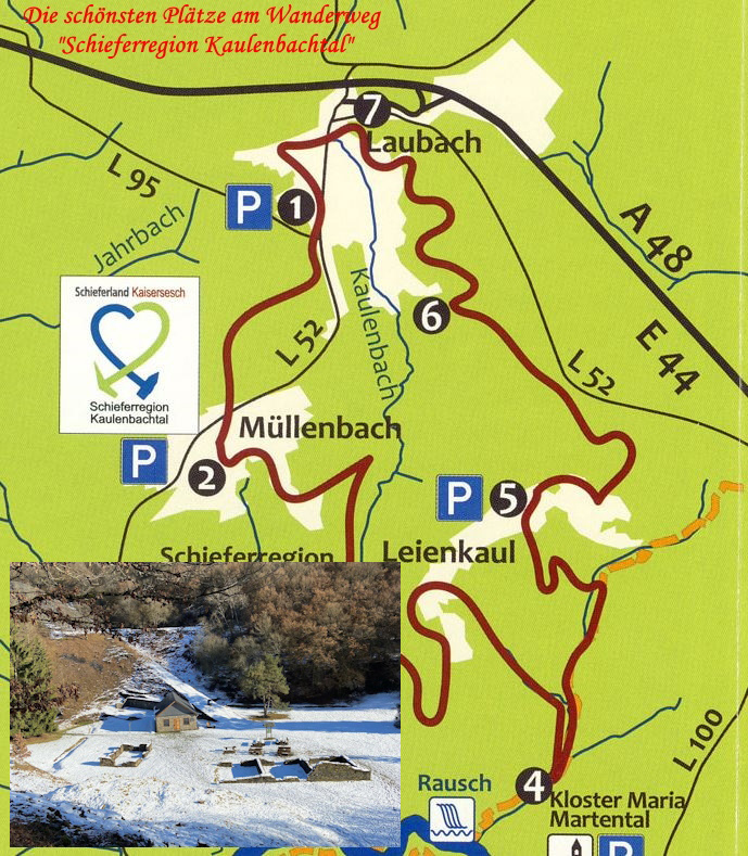 (A) Schieferlandhalle Müllenbach (gegenüber Friedhof, Parkplatz) Startpunkt geführte Wanderungen: Kulturzentrum Schieferregion, gegenüber Kirchenportal (1)